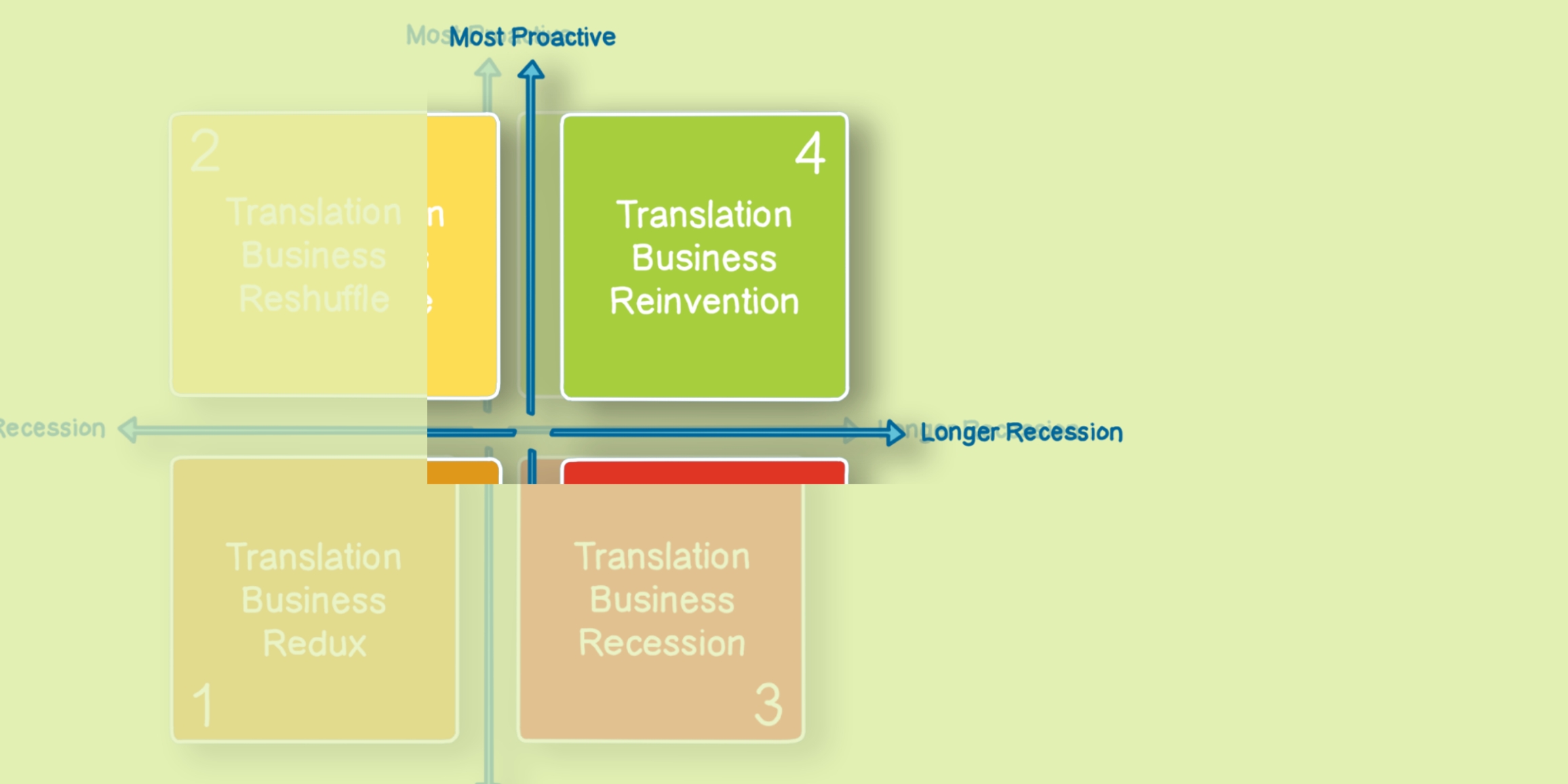 For example, reinvention could represent a language industry equivalent to a genuine step-change - how, for example, the badly-hit hospitality industry could resurrect itself by aligning itself with a greener, more environmentally-sensitive agenda. But it might simply mean getting rid of excess fat and inefficiency after hitting an unexpected speed bump.